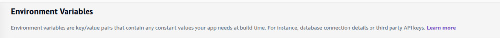 Environment variables are key-value pairs that you can add to your application’s settings to make them available to Amplify Hosting.